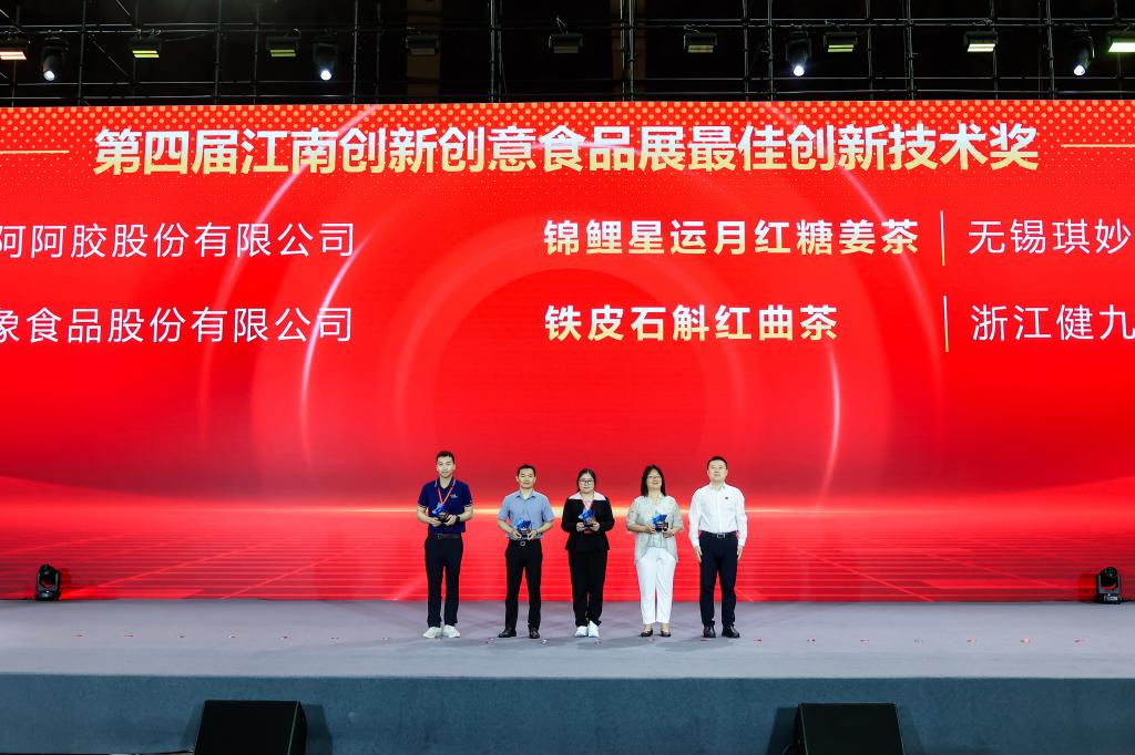 院长范大明为东阿阿胶股份有限公司等4家荣获“最佳创新技术奖”的单位颁奖。获奖产品同时在体育馆内展出。
