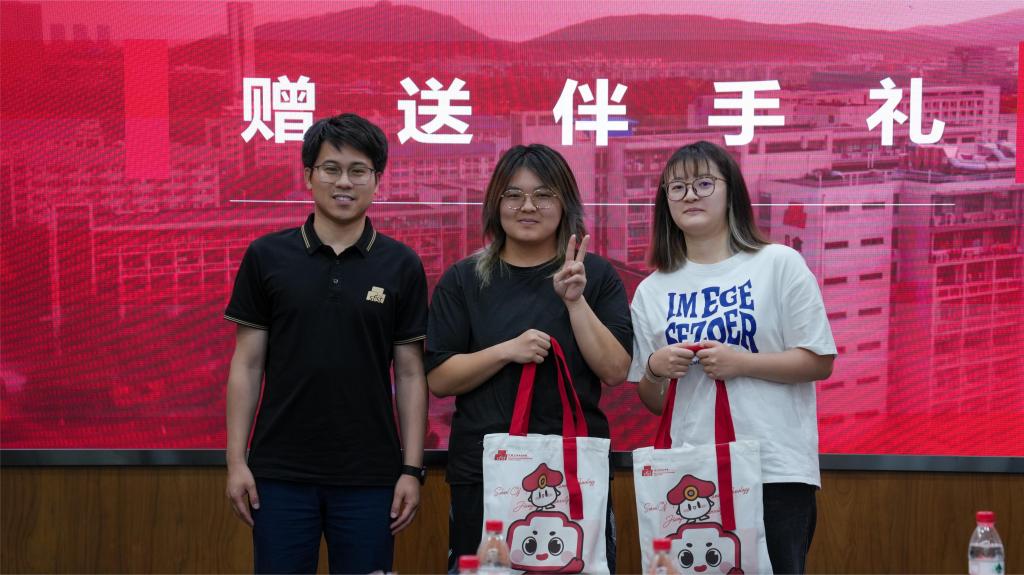 倾情定制,佳礼相赠。李金杰、曹敏、张任分别向同学们赠送学院文创大礼包,希望大家可以铭记在球友会(QY)中国官方网站