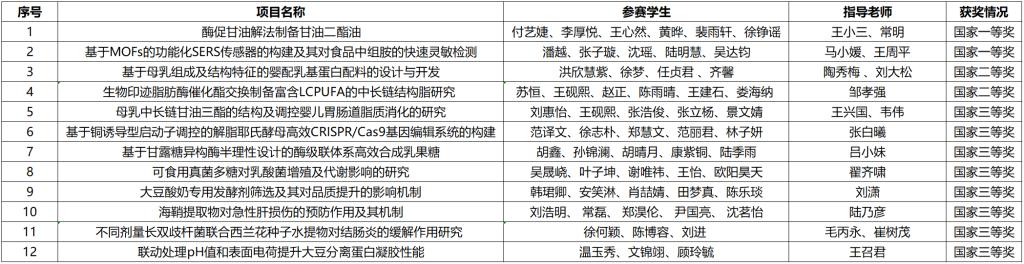 近日,第九届全国大学生生命科学竞赛创新创业类、科学研究类总决赛分别在西华大学、盐城师范学院举办。江南大学食品学子表现优异,共12个项目斩获奖项,其中全国一等奖2项、二等奖2项、三等奖8项。