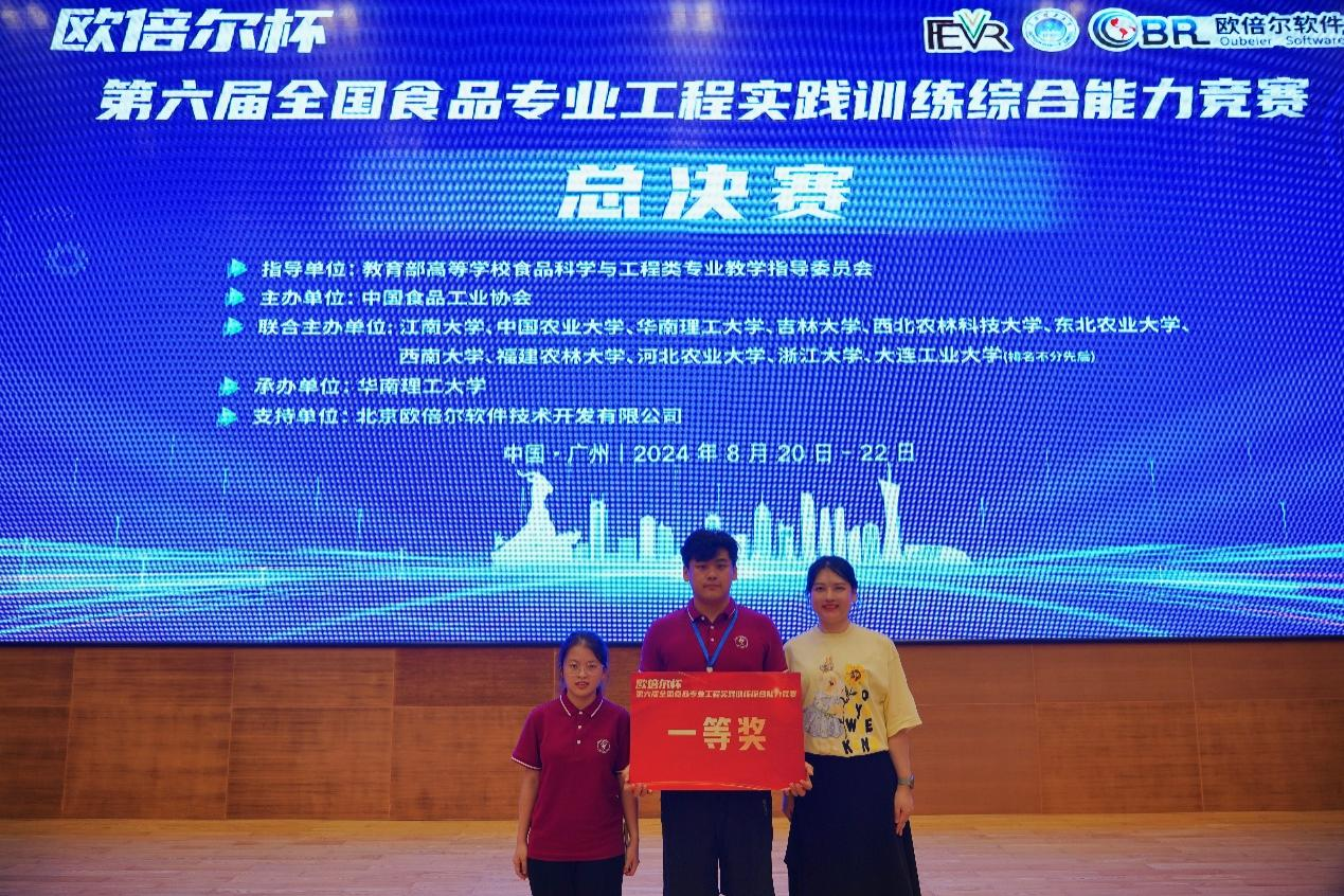 近日,由教育部高等学校食品科学与工程类专业教学指导委员会、中国食品工业协会、江南大学等高校联合举办的“欧倍尔杯”第六届全国食品专业工程实践训练综合能力竞赛在华南理工大学开赛。经过激烈角逐,由我院李阳阳、李艾申、朱俊喆组成的江南大学代表队在45支参赛队伍中脱颖而出,荣获一等奖,江南大学荣获“优秀组织奖”,张龄之老师荣获“金牌裁判奖”。