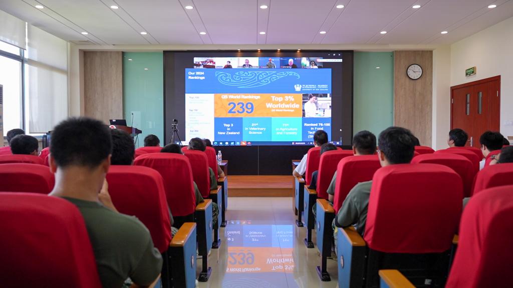 Jamie Quinton详细阐述了梅西大学项目的未来蓝图与精心规划,介绍了由顶尖学者组成的教师团队以及学院在全球食品科学领域的领先地位,为新生们绘制了充满希望的学术蓝图。谢云飞饱含深情地回顾了梅西项目的发展历程,阐释了其独特的人才培养体系与丰富的内涵特色,并为新生们未来的学业规划提供了宝贵的建议与指导。