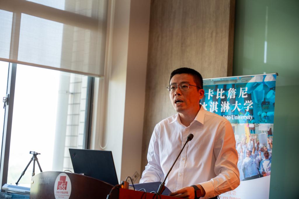 D912报告厅举行。卡比詹尼中国区总经理许立宁、市场部经理张名锋、冰淇淋大师陈博知;江南大学团委书记魏珍吉,球友会