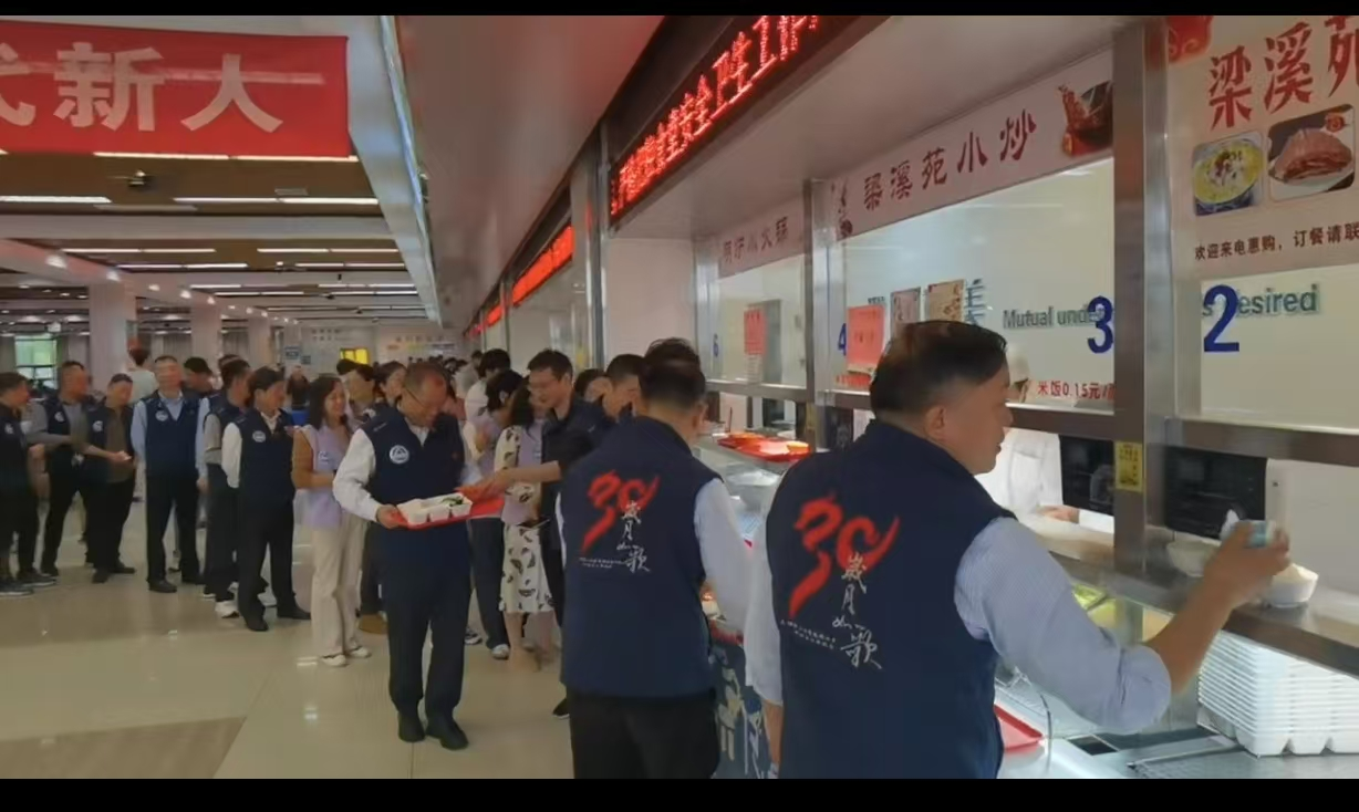 午饭时间,校友们在第二食堂体验品种丰富、健康营养的校园美食,忆及当年青山湾的大排、狮子头、油面筋、红块肉等,仿佛又回到了那段青葱岁月。