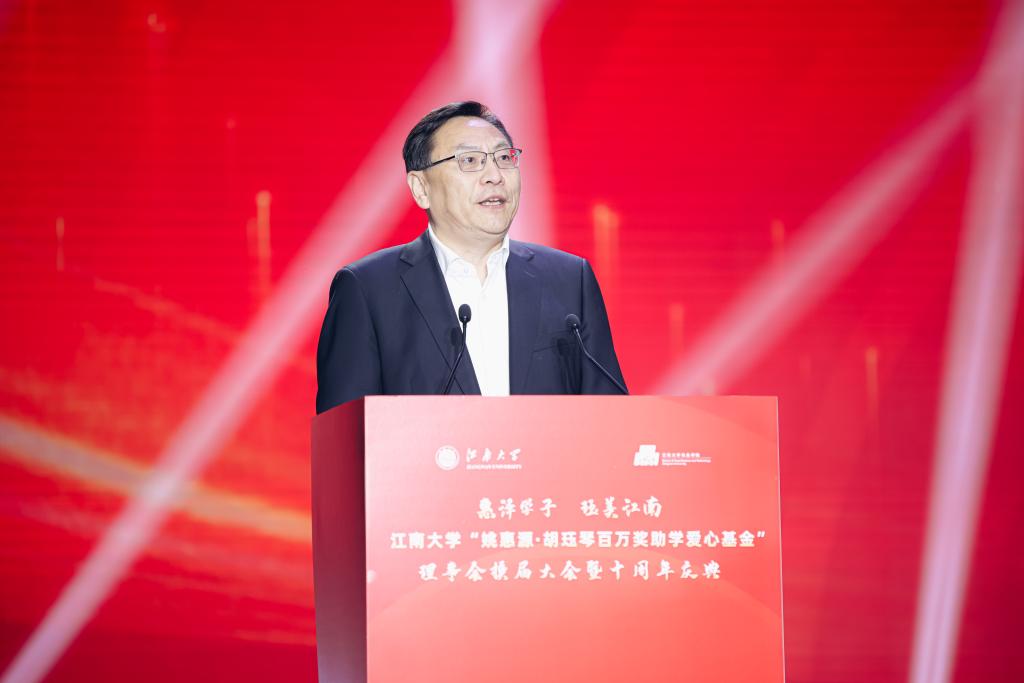 吴正国首先致辞。他代表学校党政向出席活动的领导嘉宾表示热烈欢迎,向姚惠源老师表达最诚挚的敬意。他指出,爱心基金将几代江南食品人汇聚在“培养一流食品人、追逐食品强国梦”的同心圆中,这是一种师风引领、行业协同、社会联动的育人新模式,是立德树人的良好实践。他希望学子们接续传承,常怀感恩之心,常思来之不易,担当青春使命,用所思所学增进民生福祉、推动社会进步,为强国建设和民族复兴贡献江南青春力量;希望青年教师以姚惠源等前辈为榜样,将教育家精神深植于心、付诸于行,做到立德立言立功,躬耕教坛,桃李天下。吴正国希望球友会