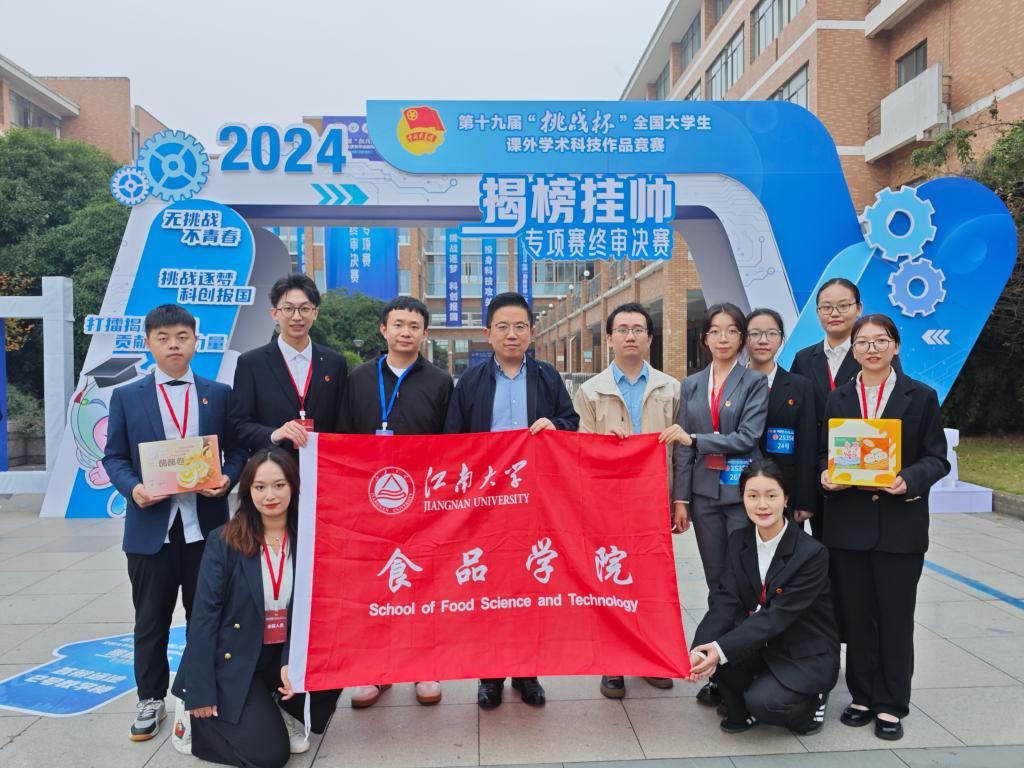 这是江南食品学子首获“挑战杯”全国大学生课外学术科技作品竞赛“揭榜挂帅”专项赛特等奖;我校首获该项赛事擂主奖项(第一名);也是我校首次有单个学院同届夺得特等奖2项。