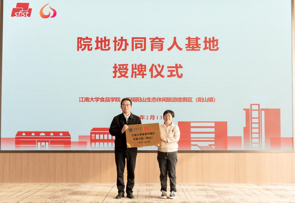 与阳山合作由来已久,当前已阔步迈入崭新阶段。此次举办食育科普小站及实践育人基地授牌仪式,必将成为院地协同开展人才培养、科学研究等事宜的重要契机,希望双方持续深化合作,共同将大思政、大食品、大科普的事业植根无锡本地,服务乡村振兴,为健康中国和人民幸福美好生活贡献智慧与力量。