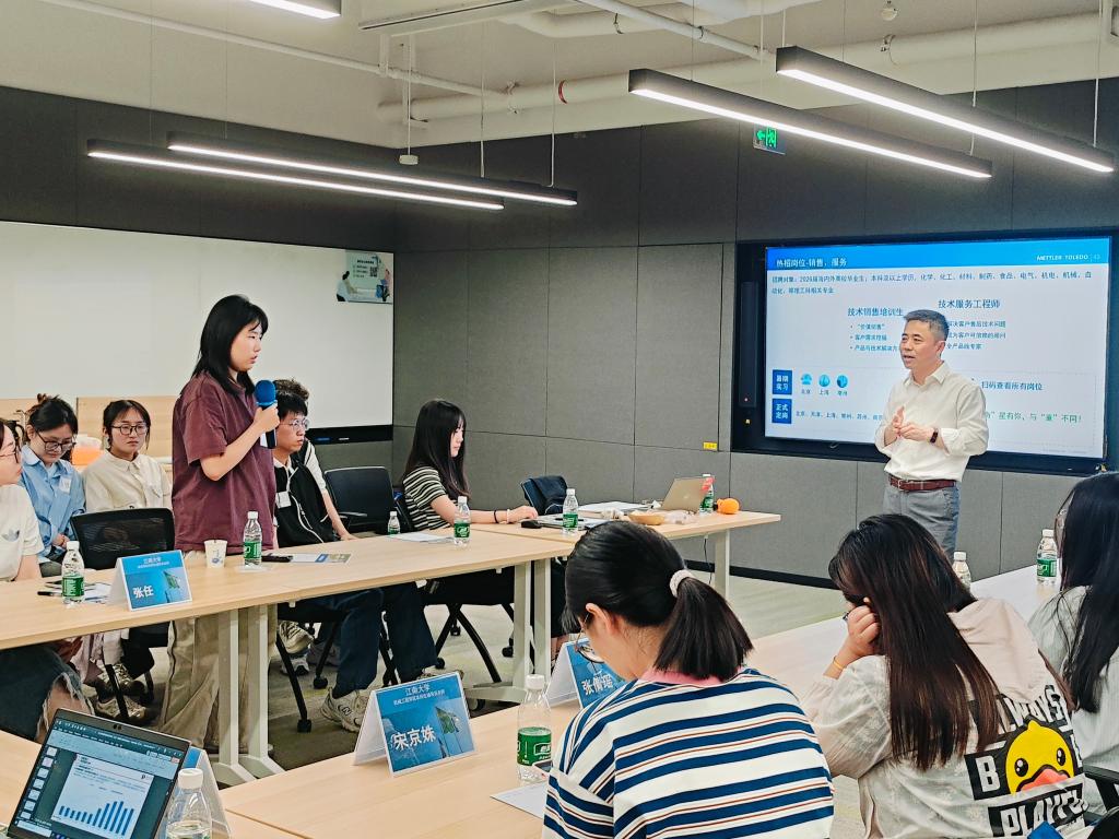 2026届毕业生辅导员张任、刘璇,机械工程学院2026届毕业生辅导员张倩瑶、宋京姝以及两院20余名研本学子赴梅特勒托利多中国园区(常州)开展江南大学“百千工程”访企拓岗促就业专项行动。梅特勒托利多中国区工业业务总经理邱嘉、服务业务总经理连城等接待我校师生访问团。