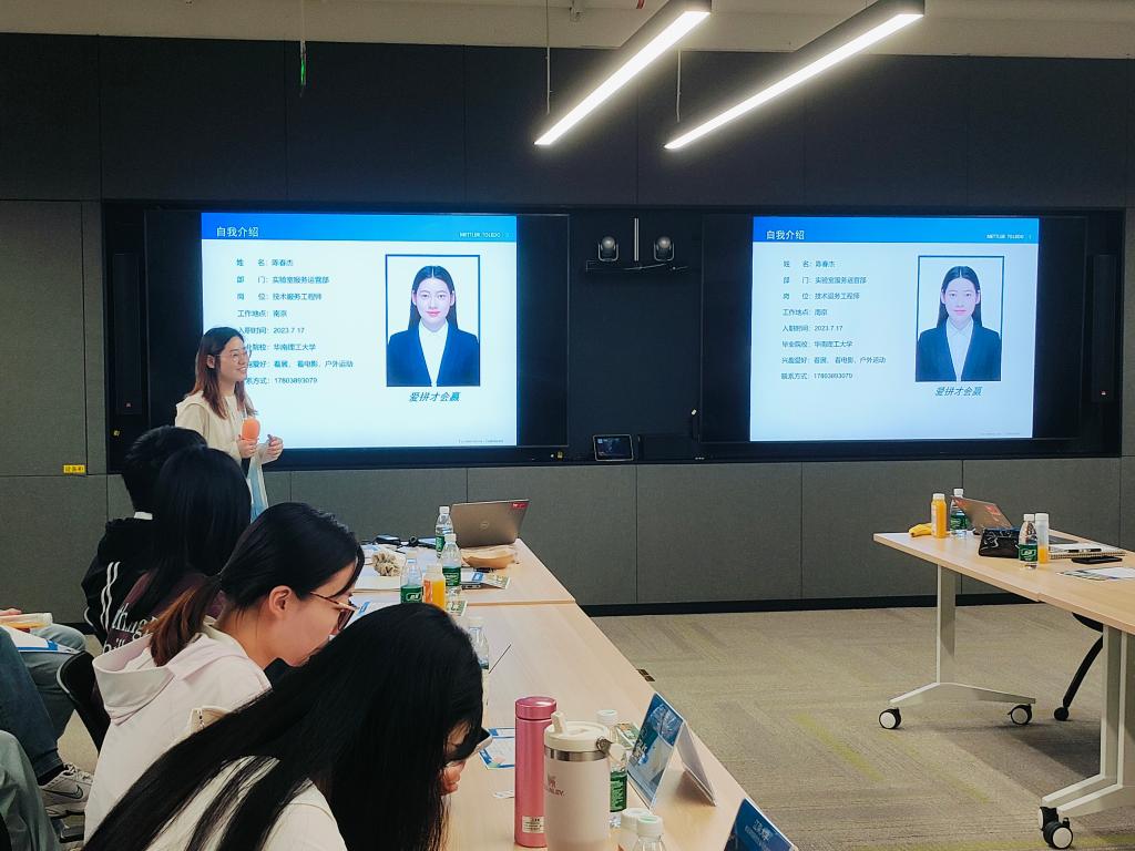 梅特勒托利多中国区工业业务苏皖区域销售工程师徐嘉豪、实验室服务运营部技术服务工程师陈春杰先后分享其职业发展和个人成长经历。他们详细介绍日常工作内容、职业发展方向以及工作环境和氛围,强调公司高度重视人才培养体系,并热情欢迎同学们加入。