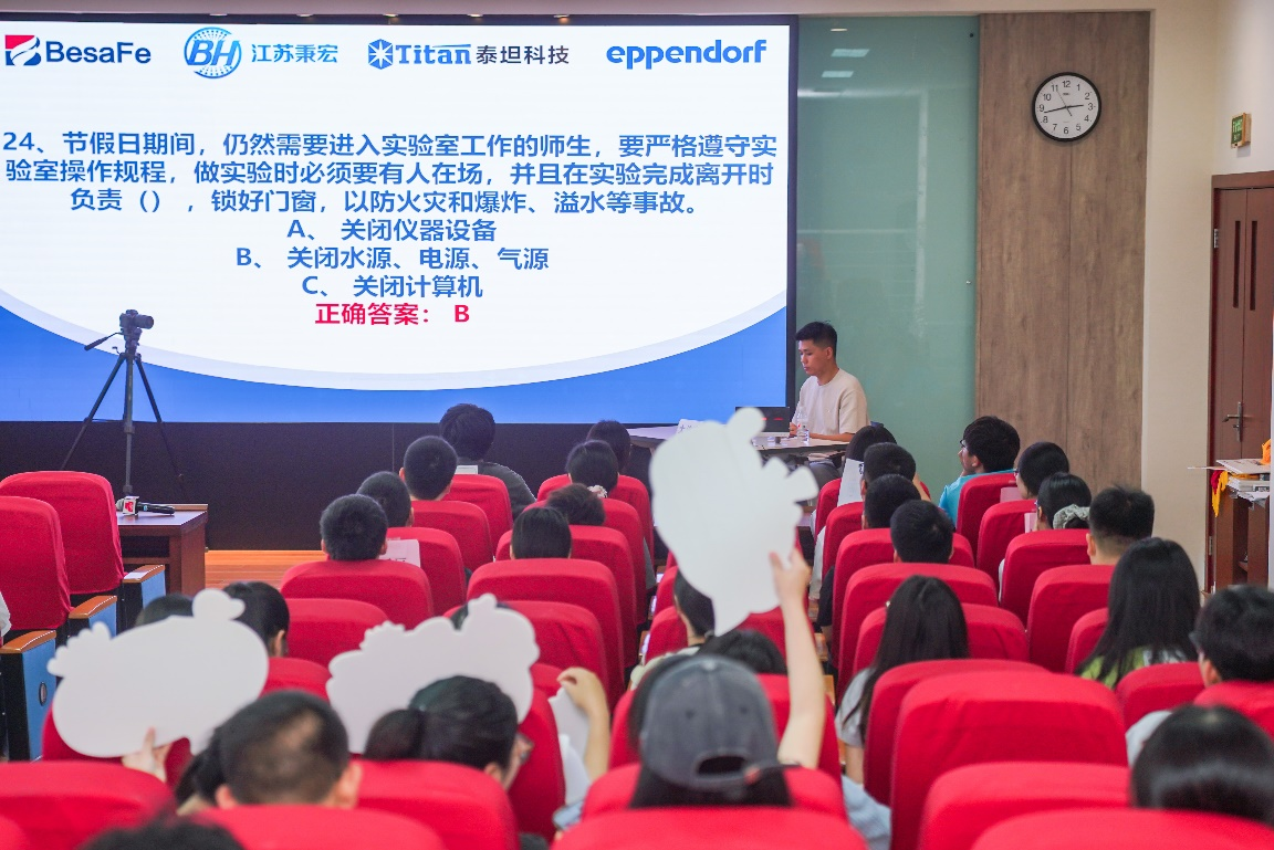 主办,南京北飞实验设备有限公司、上海泰坦科技股份有限公司、江苏秉宏铭宇科技有限公司以及艾本德(上海)国际贸易有限公司友情支持。大赛“以案为鉴,以知促行,防微杜渐,固本安源”,通过“案例实战+知识竞答”的模式,全面提升广大师生的实验安全综合能力,构建党建引领、校企协同的安全育人新生态,为筑牢实验安全防线提供了可复制的实践范式。