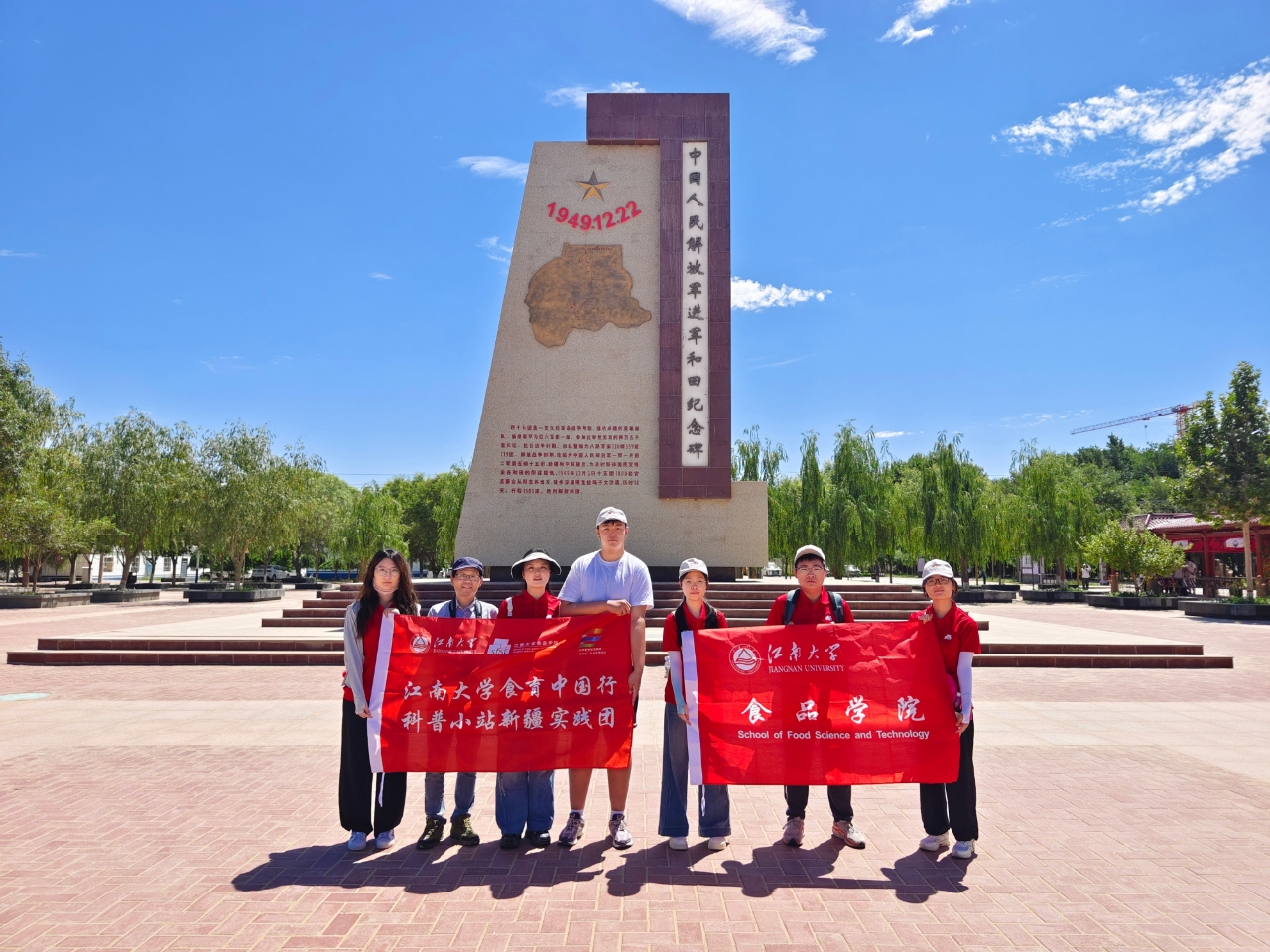 队员们前往中国人民解放军进军和田纪念碑瞻仰先辈与英烈。在纪念碑前,全体成员肃然起敬,认真聆听讲解,向革命先烈致以深切缅怀与崇高敬意。