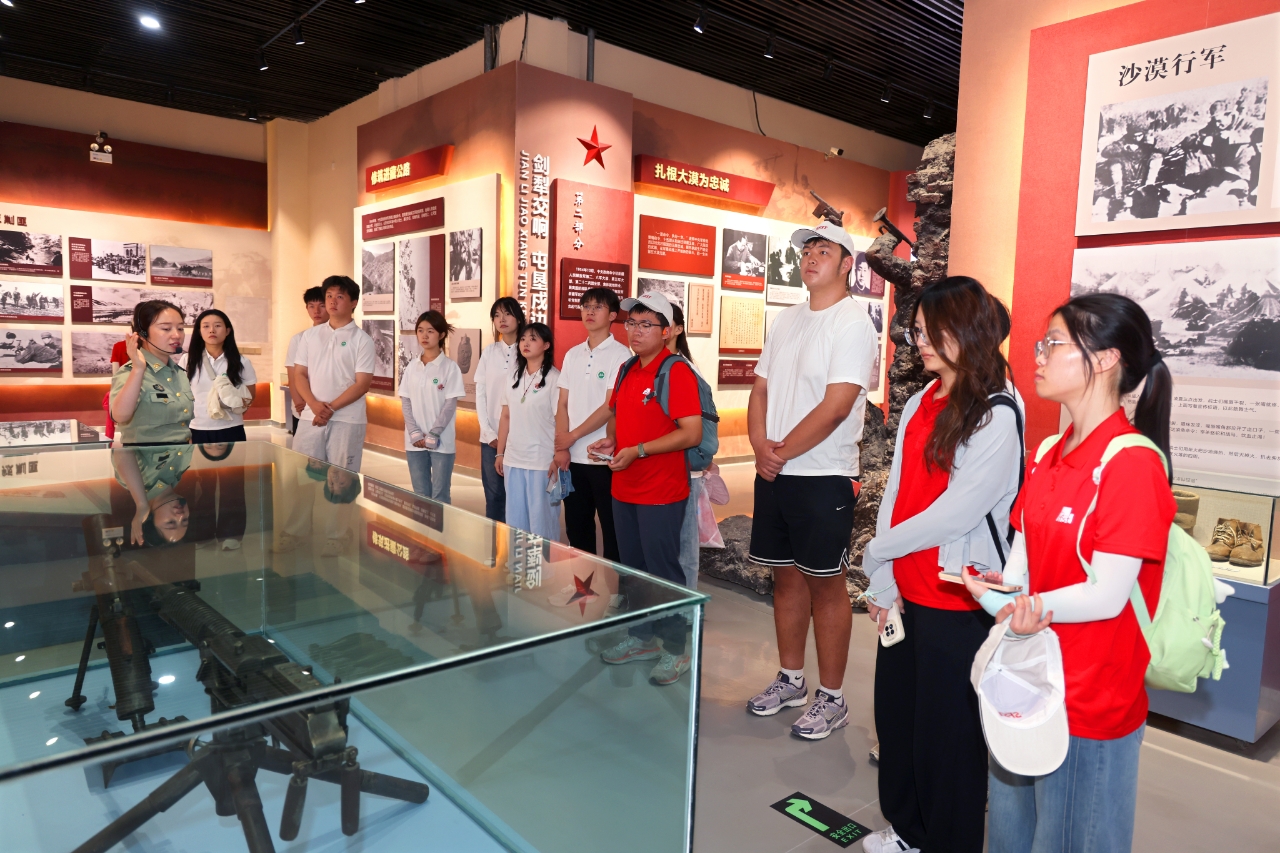有这样一群人,他们用青春建设边疆,以无私奉献铸就时代丰碑,他们就是——沙海老兵。14日上午,江南大学与石河子大学的青年学子共同前往47团沙海老兵红色区域,参观中国人民解放军进军和田纪念馆,聆听讲解员讲述沙海老兵横穿“死亡之海”——塔克拉玛干的英雄事迹:他们骁勇无畏,挺进和田,终其一生扎根建设南疆。展墙上镌刻着一位位英雄的名字,他们不慕名利,一句“和田驻军万不可退”的命令,让他们毅然决然将自己的一生献给了沙漠。“你们出过和田吗?没有。你们回过老家吗?没有。你们坐过火车吗?没有。”这连续三句沉重的“没有”,正是老兵们几十年如一日扎根新疆、热爱新疆、屯垦戍边的无声誓言。他们生动诠释着“胡杨精神”“老兵精神”“兵团精神”,用生命书写了一部艰苦创业、无私奉献的军垦诗篇。