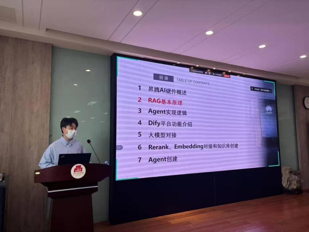 华为技术专家首先从底层硬件架构入手,详细介绍华为自主研发的昇腾(Ascend)系列AI处理器。专家围绕其设计理念、计算架构、关键特性以及在AI训练和推理场景下的卓越性能进行深入浅出的讲解。通过介绍,参训教师对支撑大模型运行的算力基础有了清晰的认识,理解了昇腾系列如何为复杂的人工智能任务提供高效、稳定的算力支持,为后续的大模型搭建奠定了坚实的硬件知识基础。