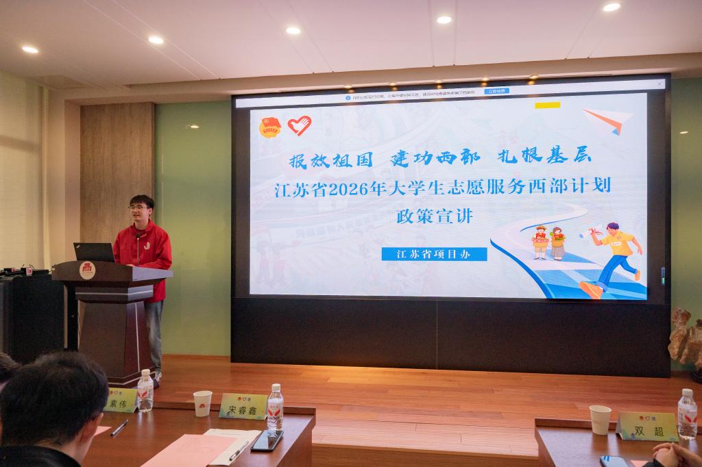 随后,江南大学西部计划宣讲团成员史锋围绕西部计划的招募流程、服务内容及政策保障等方面进行了系统解读,帮助同学们全面了解项目情况。
