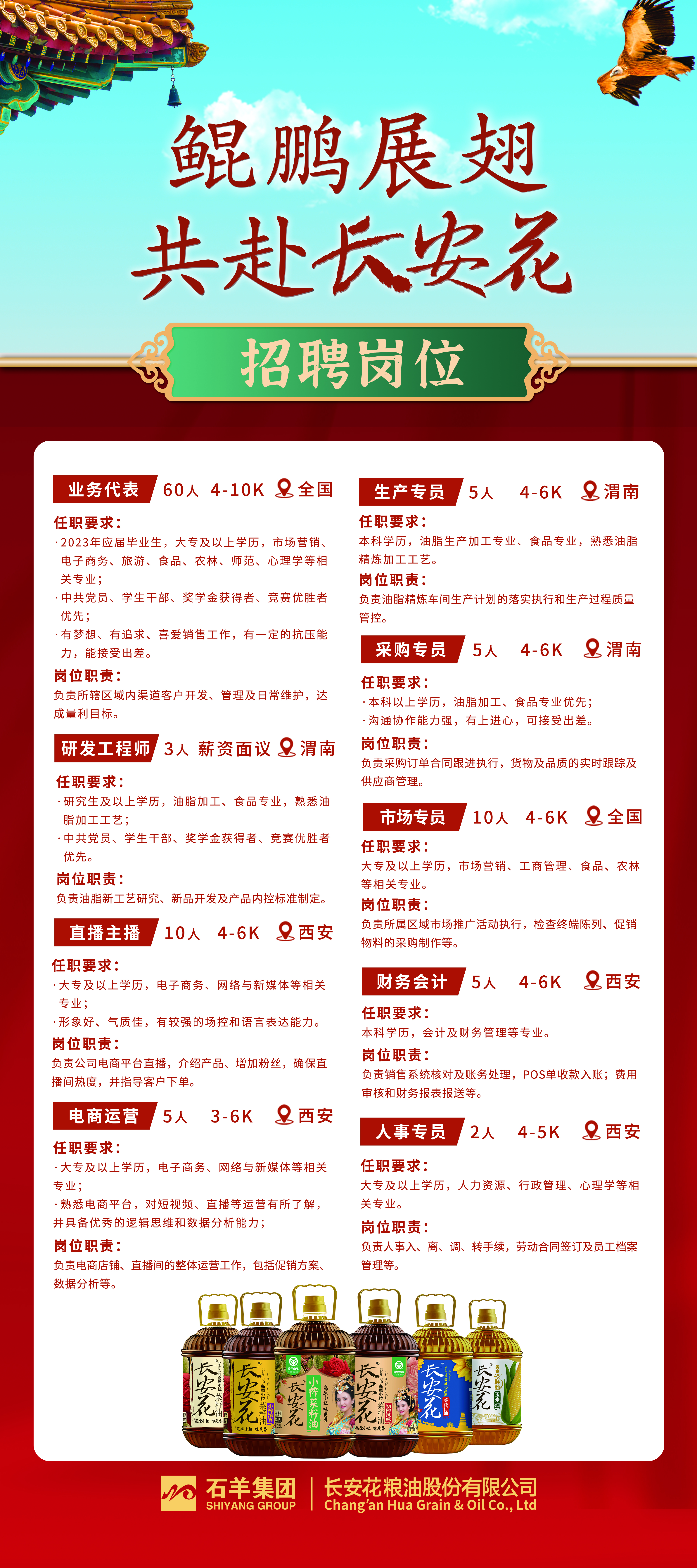 就业 【2023】 49号 长安花粮油股份有限公司招聘简章