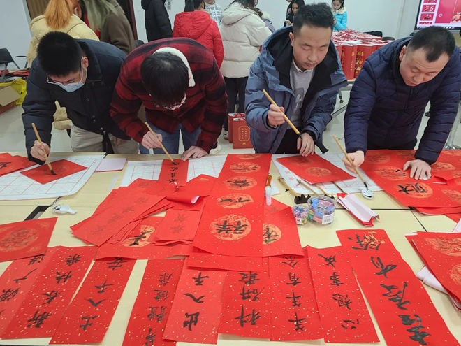 还开展了热闹喜庆的游园会,学生们一起玩趣味投壶,现场写春联和“福”字、拍摄贺岁写真、向远方的家人寄家书送祝福。