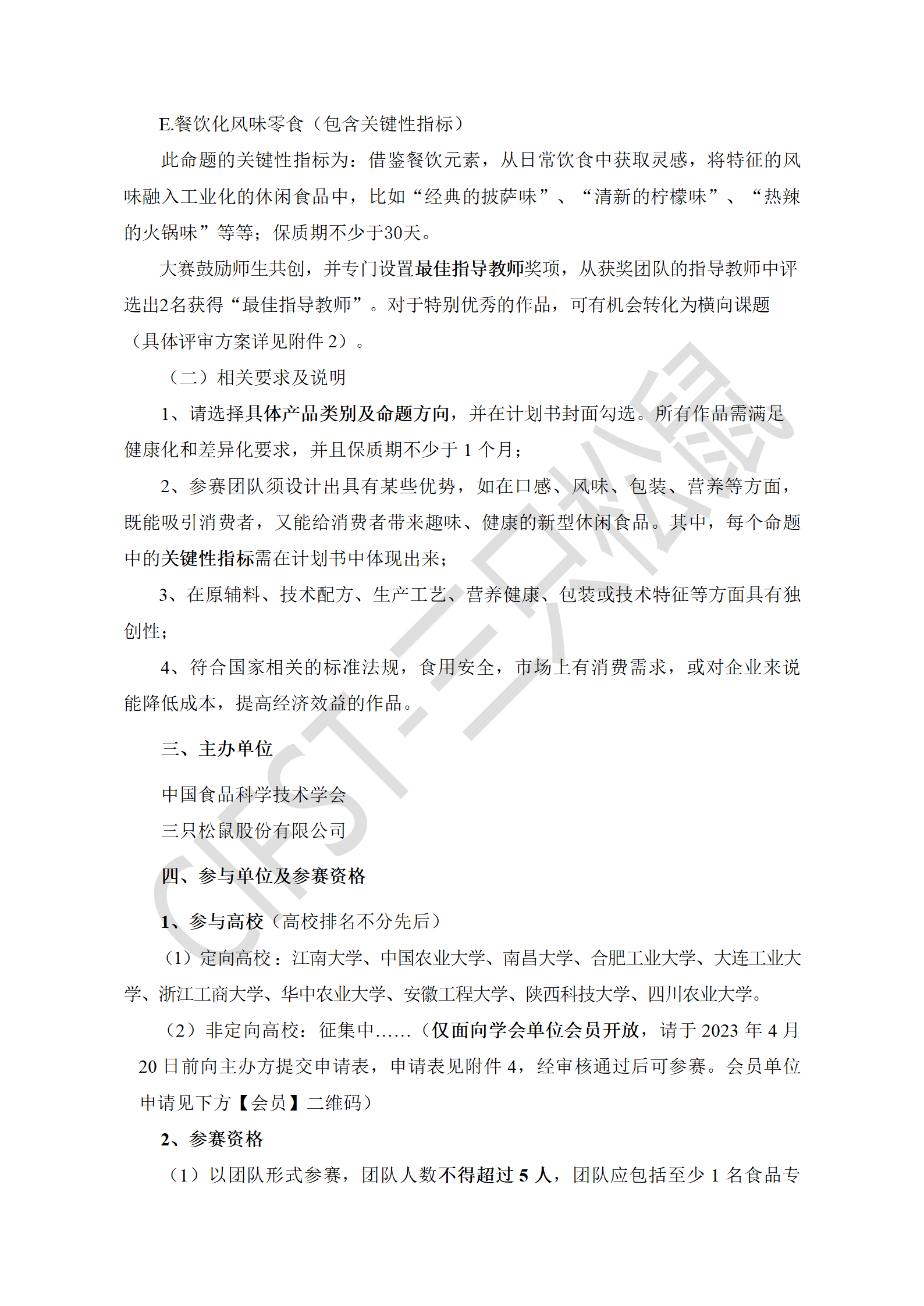 附件1:CIFST第五届“三只松鼠杯”休闲食品创新大赛-规则及参赛说明-终版.docx