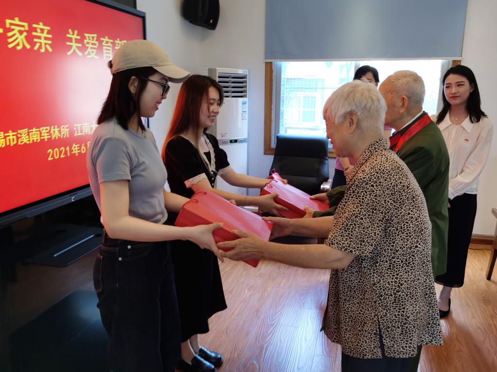 前往无锡市溪南军休所开展“民族一家亲,关爱育新人”慰问活动。无锡市“光荣在党50年”离退休干部优秀共产党员董振泰、华福娟,溪南军休所副所长、关工委副主任陈鸣辉,溪南军休所办公室主任林世琳,球友会